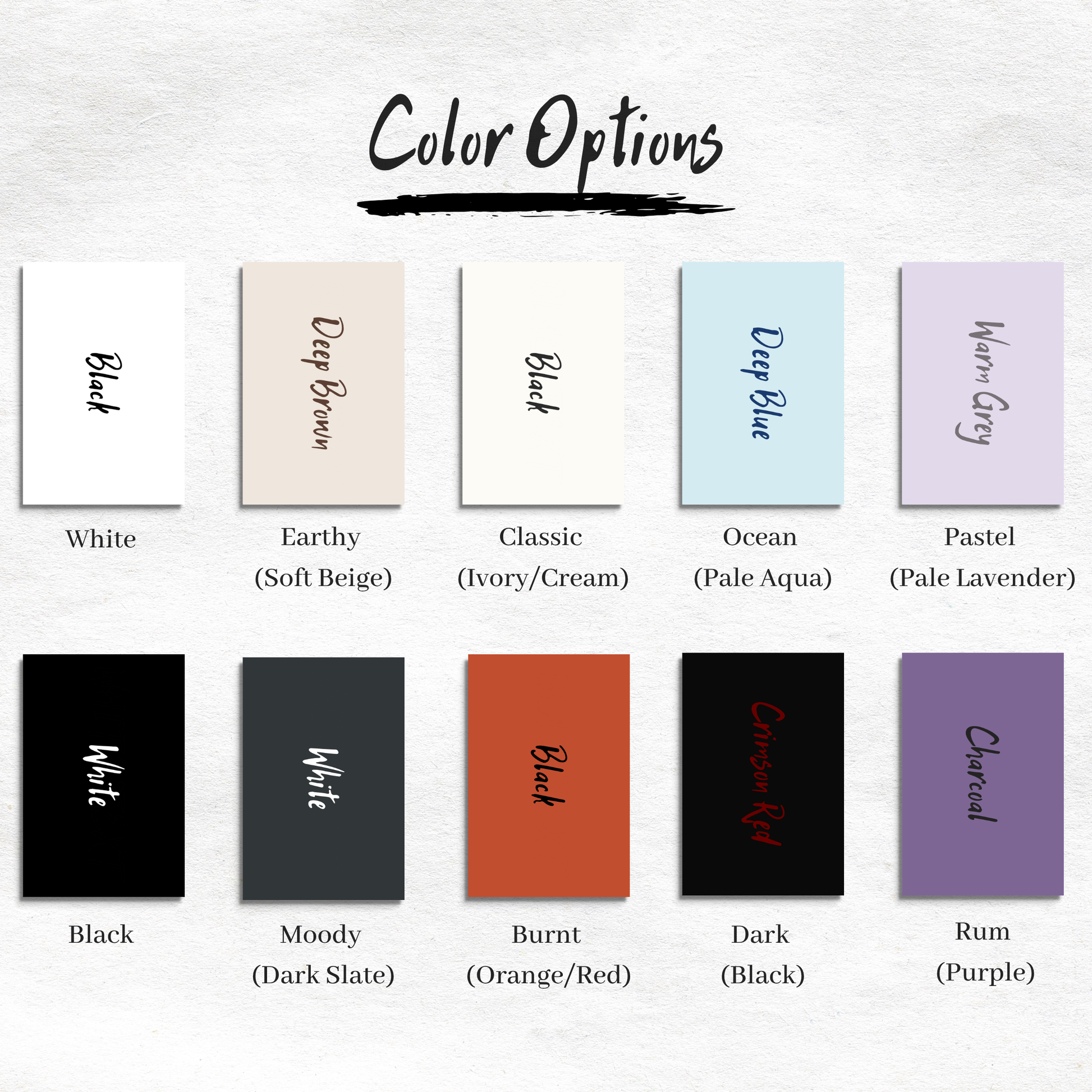 1. Color (See Color Options): If no color is chosen, we will use the White Background (default)